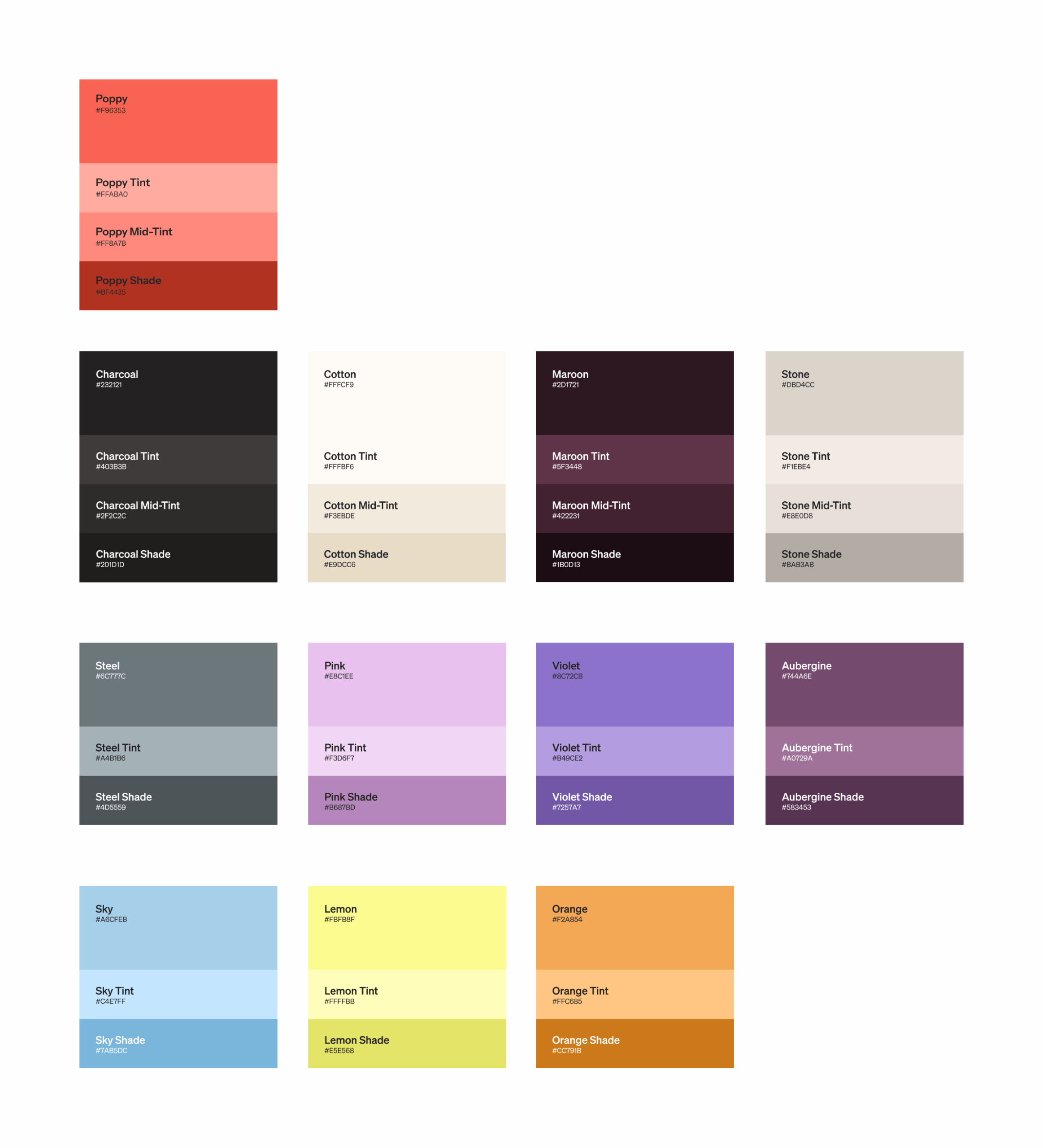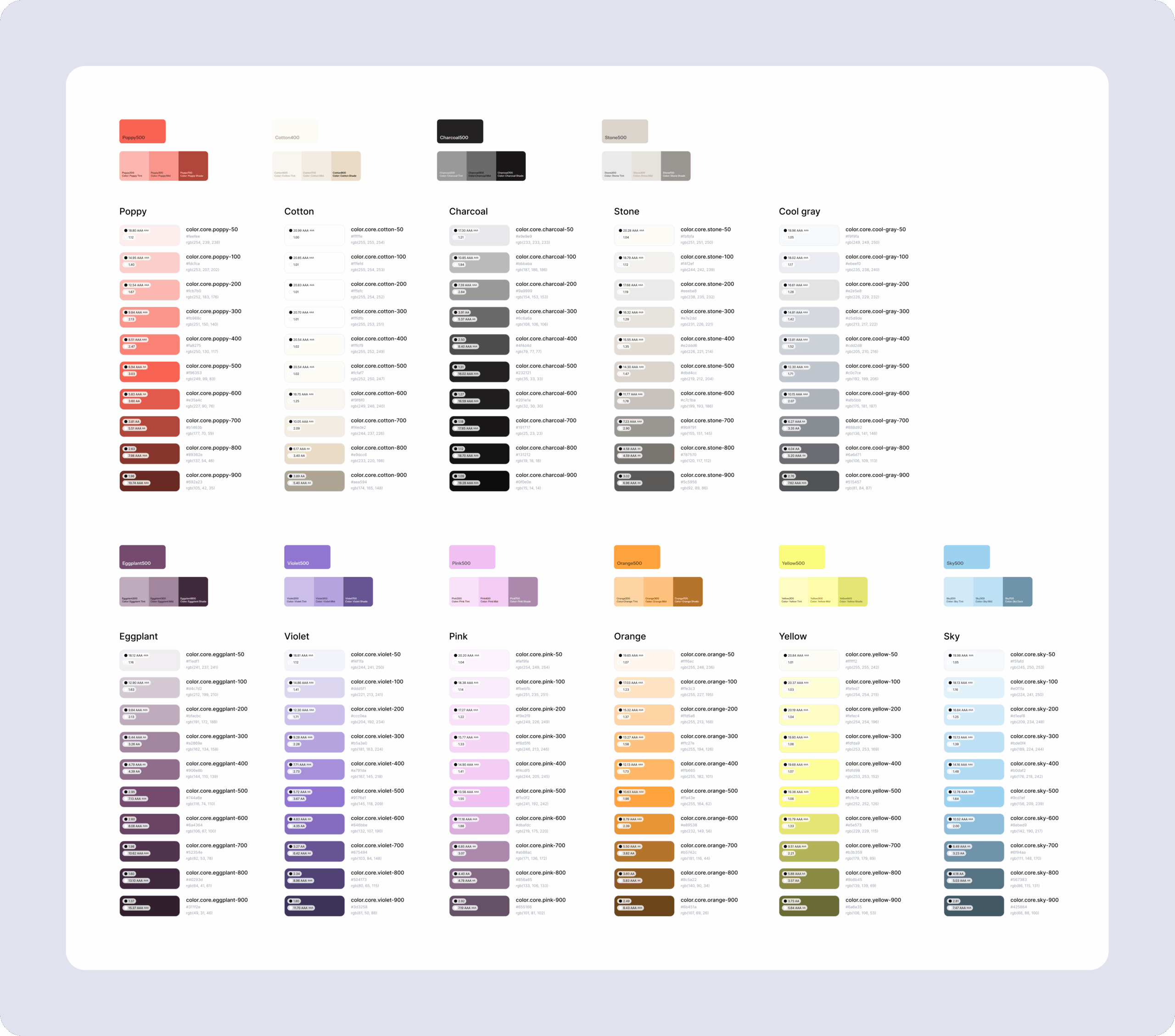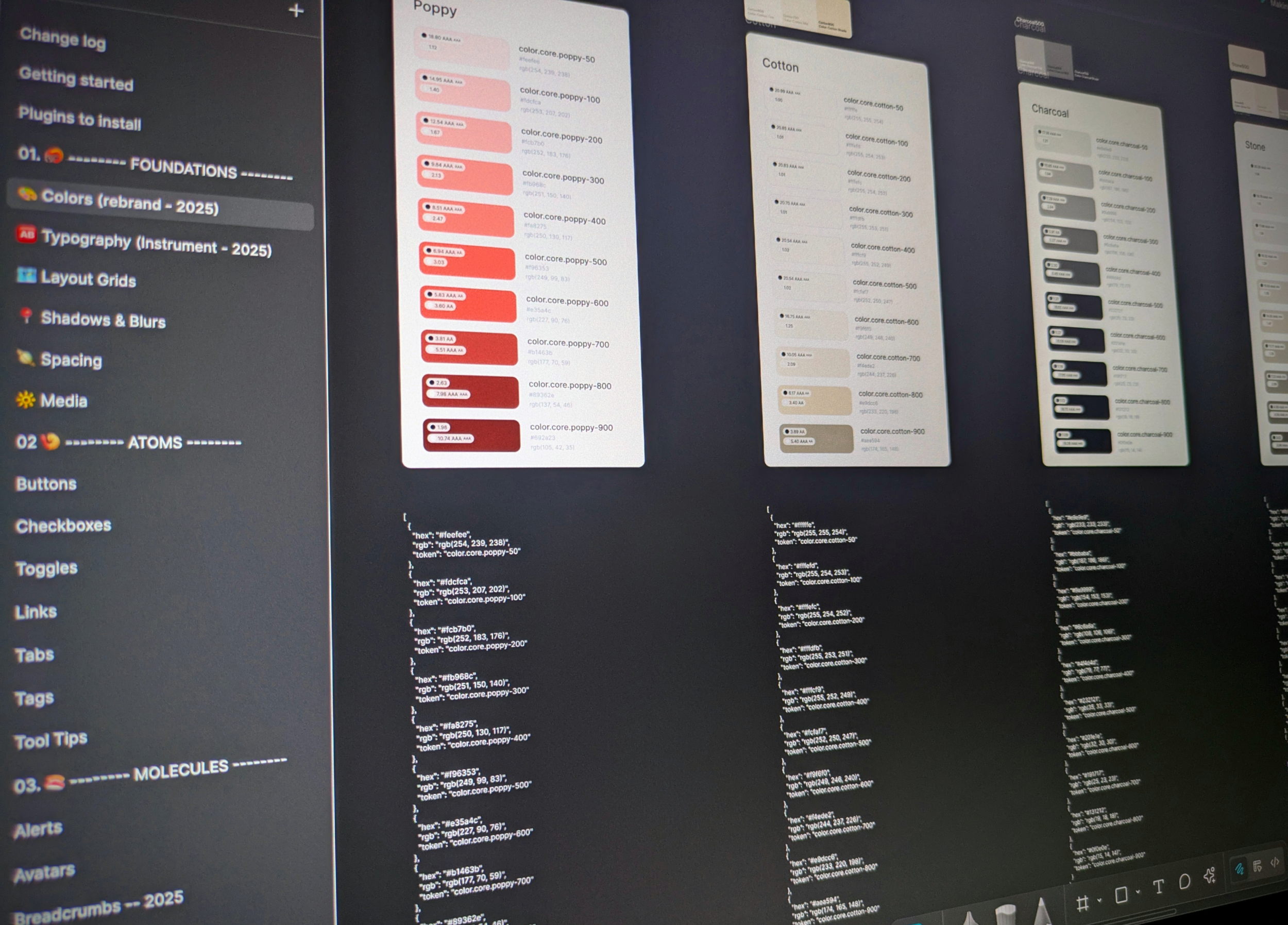 Screenshot samples from the design system (colors and typography)