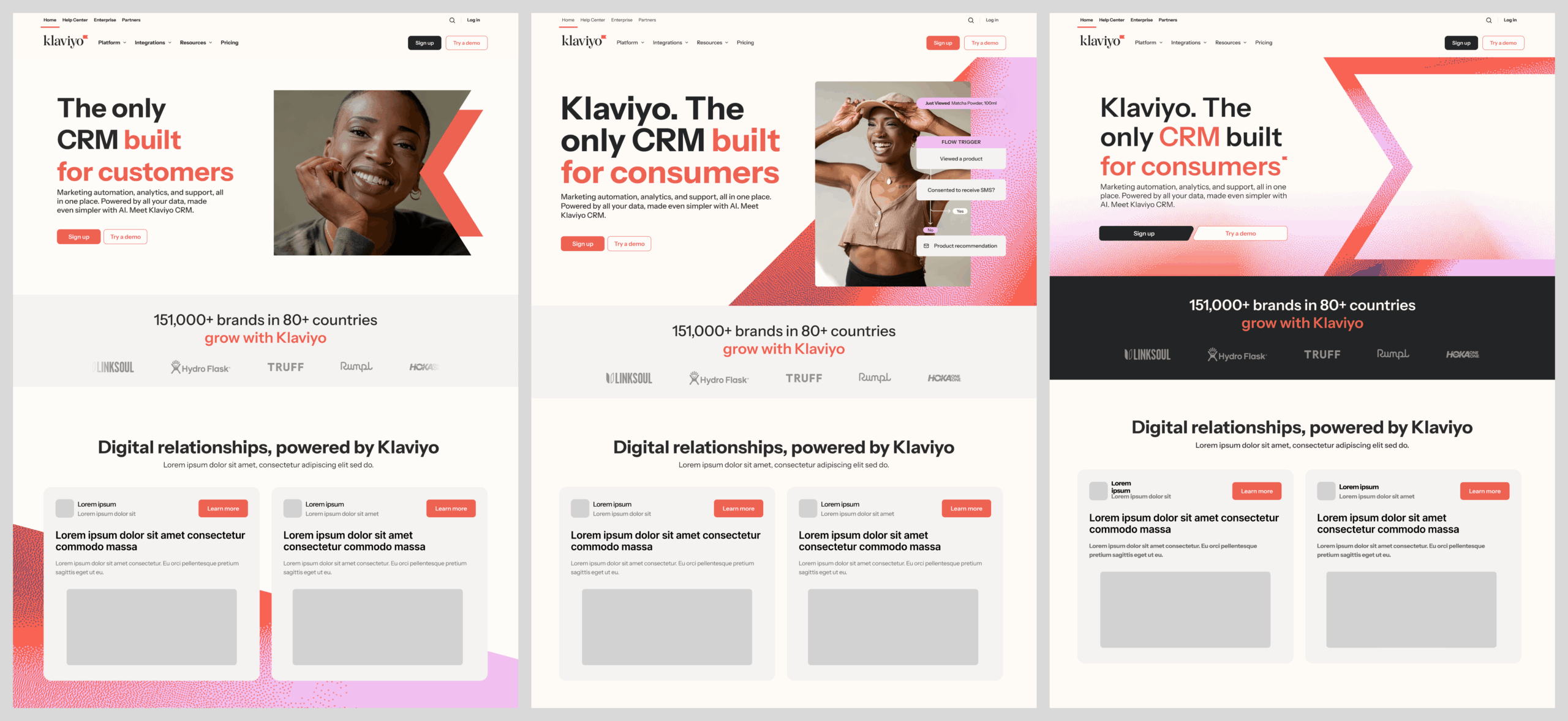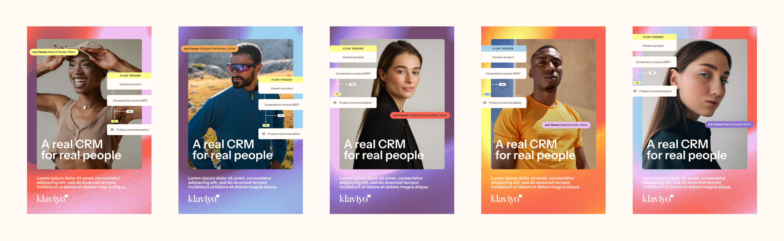 The final designs reflect a balance of brand storytelling, performance, and design system integrity. For the B2C for CRM campaign, the visuals were crafted to feel bold, premium, and forward-looking—supporting Klaviyo’s positioning as the first CRM built specifically for B2C.